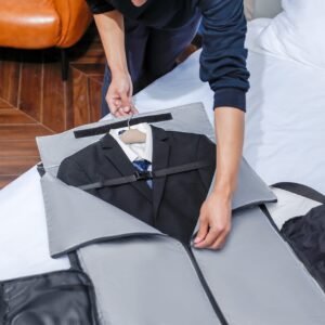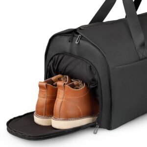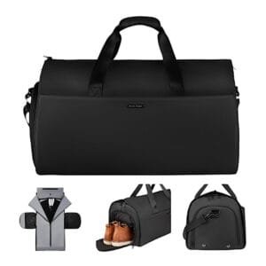 The bag features a dedicated suit pocket capable of accommodating suits up to 19.7″ in shoulder width, ensuring your attire remains wrinkle-free. A separate shoes pocket keeps your footwear organized, while the foldable design allows for convenient storage when not in use.
