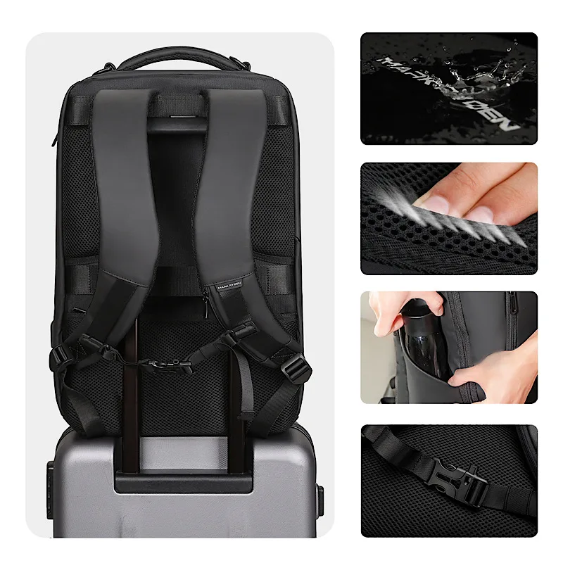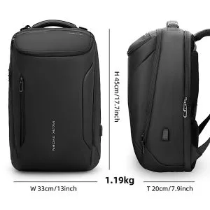 The Mark Ryden 9031 backpack is designed for the modern commuter, blending functionality with sleek style. Weighing between 1.1kg and 1.3kg, this backpack is constructed from durable PU and Oxford materials, offering a lightweight yet robust carrying solution. Measuring 45*33*20cm, it provides ample space without being bulky.