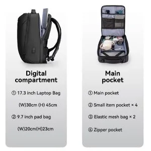 Safety is a priority with the inclusion of a survival whistle, and the quick card slot offers convenience for easy access. The breathable back pad enhances comfort, making it suitable for all-day wear. Inside, the digital compartment fits a 17.3-inch laptop and a 9.7-inch tablet, along with multiple pockets for organizing small items. Whether you’re commuting or exploring the city, the Mark Ryden 9031 backpack is designed to meet your needs with style and practicality.